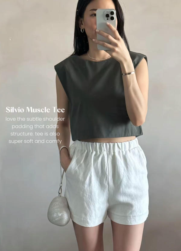A step above your average basic, this tee comes with subtle shoulder padding that instantly creates a more structured silhouette. It's a small detail that makes a big difference, giving a polished edge to an otherwise casual piece.