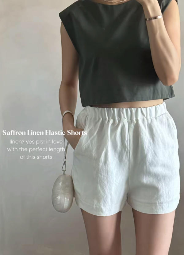 Comfortable yet refined, these linen shorts are a summer essential. Unlike many linen pieces that wrinkle easily, this fabric feels smooth and irons beautifully with little effort. The elastic waistband adds all-day comfort, while the breathable fabric keeps it light and cool. It's a piece that blends practicality with style—perfect for travel, casual outings, or even lounging at home.
