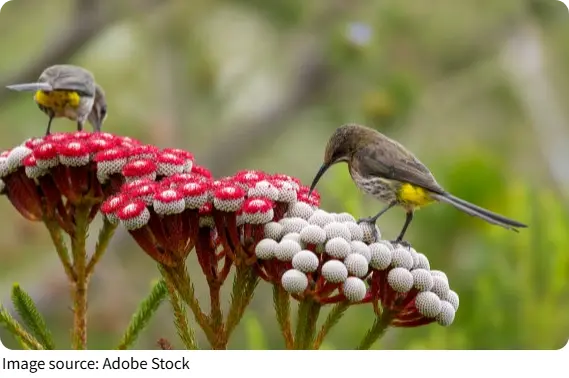 For those studying adaptation, comparing sugarbird visits to different flower species can reveal preferences and illustrate how anatomical traits determine ecological niches.